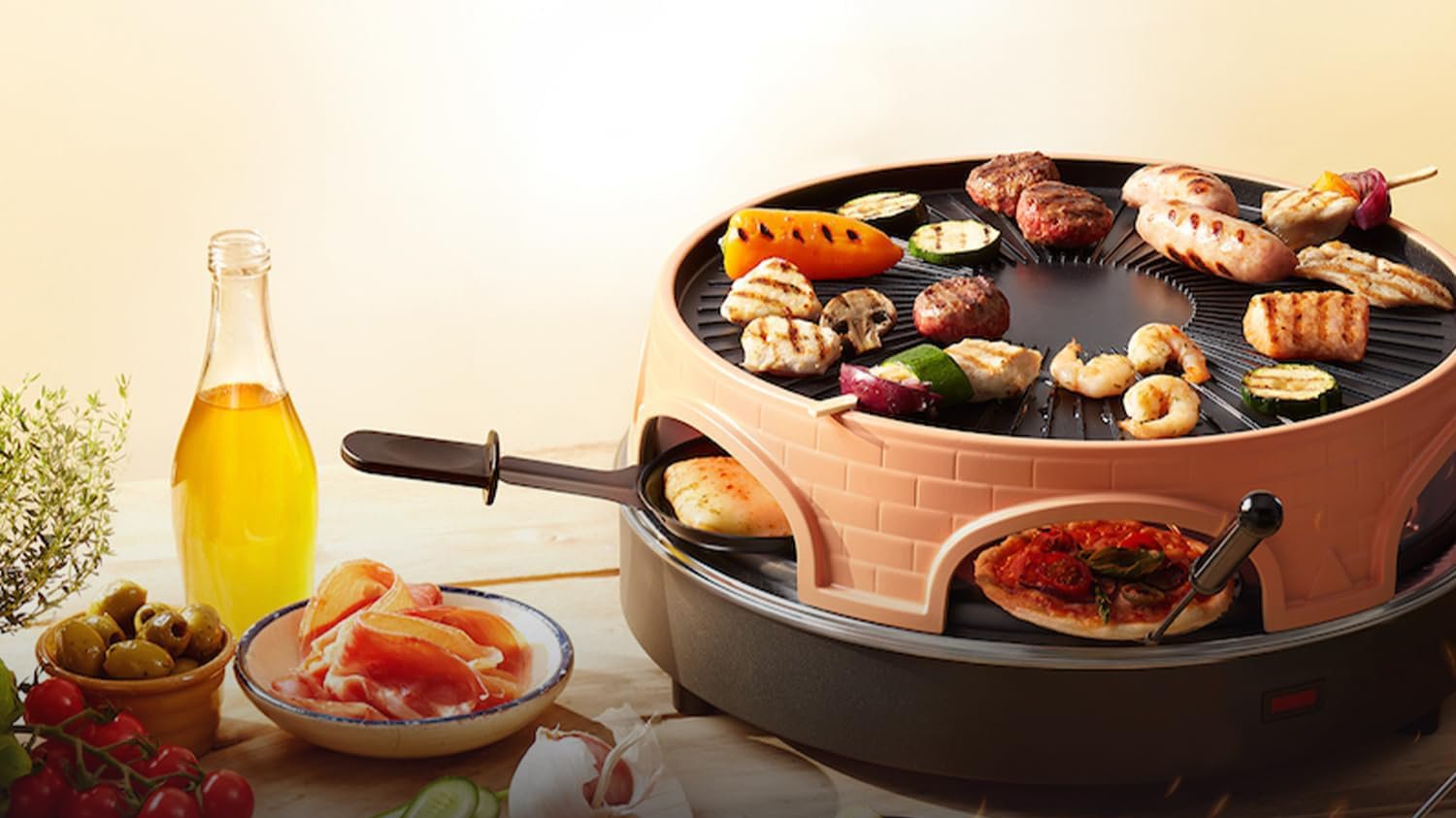 - Kleine tafeloven voor het bereiden van mini-pizza, racletten, grillen of alles samen tegelijkertijd